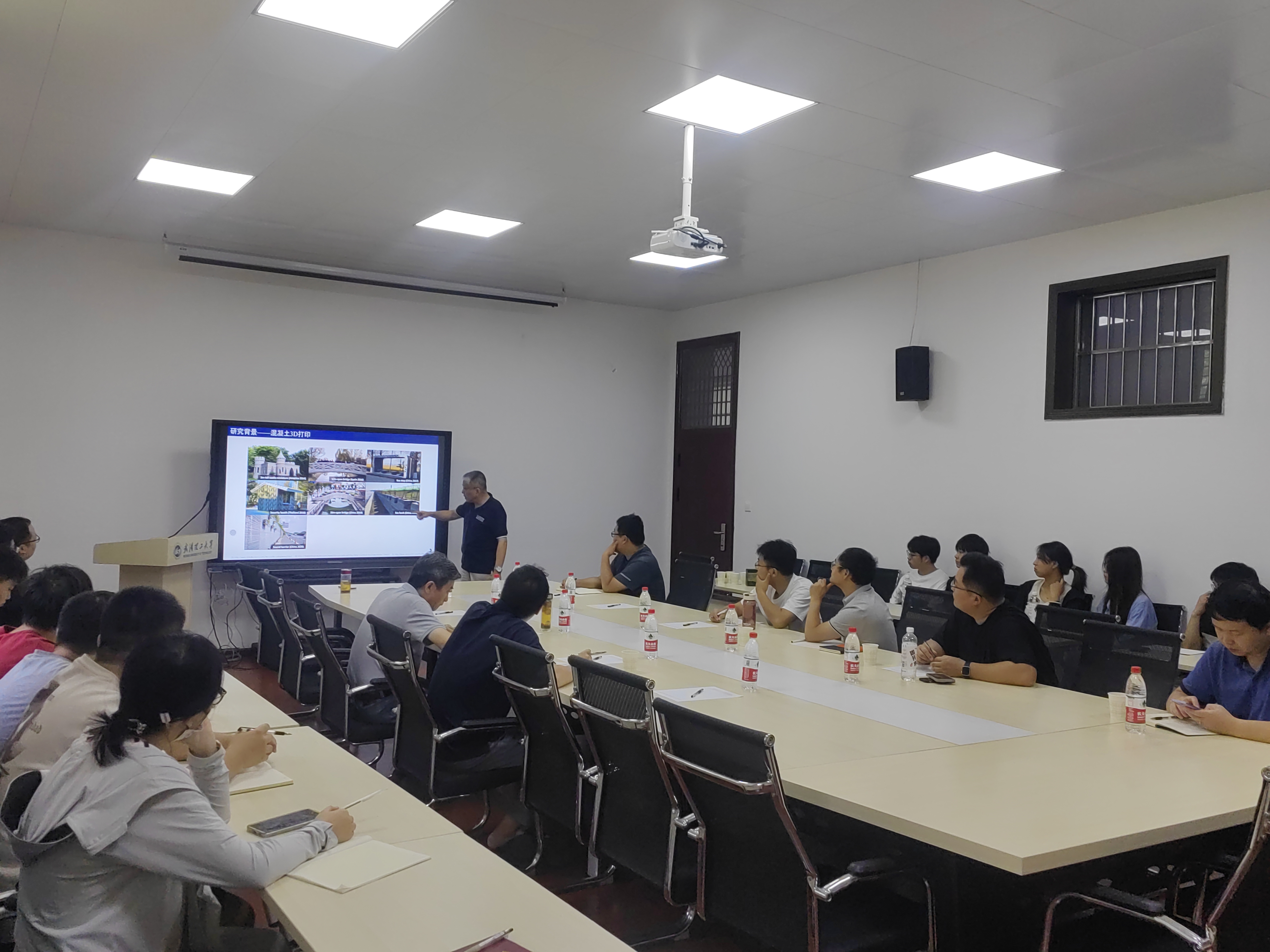 离校前,7月23日上午李教授应邀再次为公司部分师生作了一场精彩的学术报告。李教授报告题目是:“Design of novel nozzles for higher interlayer strength of 3D printed cement paste(提高3D打印水泥浆体层间强度的新型喷嘴设计)”。报告会由刘沐宇教授主持。