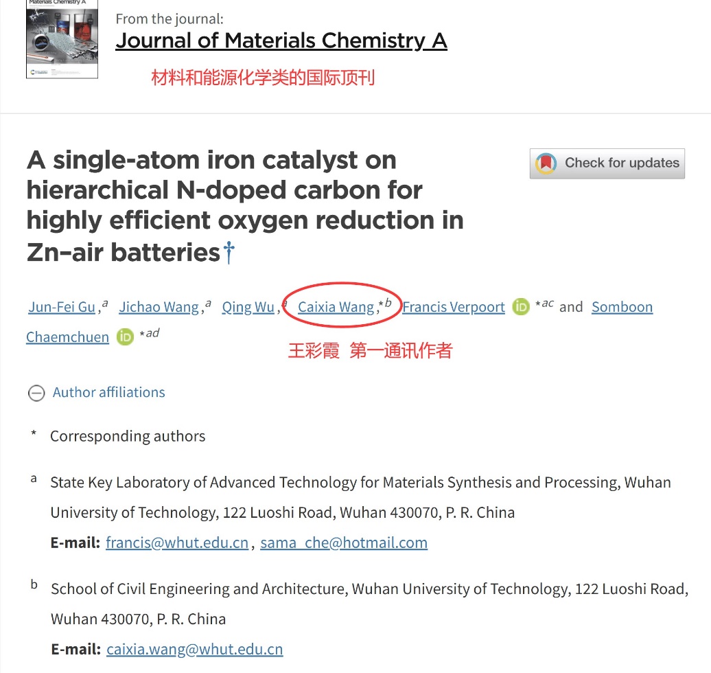《Journal of Materials Chemistry A》是英国皇家化学会(Royal Society of Chemistry,简称RSC)下的一本旗舰期刊,是材料化学领域的权威期刊,专注于报道材料在能源和可持续性方面应用,以其严格的审稿标准和高质量的学术要求而闻名,影响因子为10.7。王彩霞老师的论文能够在此期刊上发表,不仅是对其研究成果的肯定,也是对BETWAY必威科研水平的国际认可。