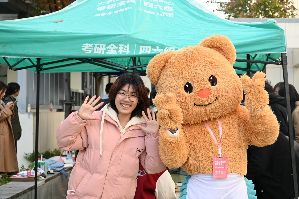 “无处不在的小确幸”活动营造美境,传递温暖关怀。员工干事身着玩偶服与参与者互动交流,营造轻松友爱的氛围,以“美”的环境抚慰心灵,增强归属感,体现环境育人、情感育人的“美育”功能。