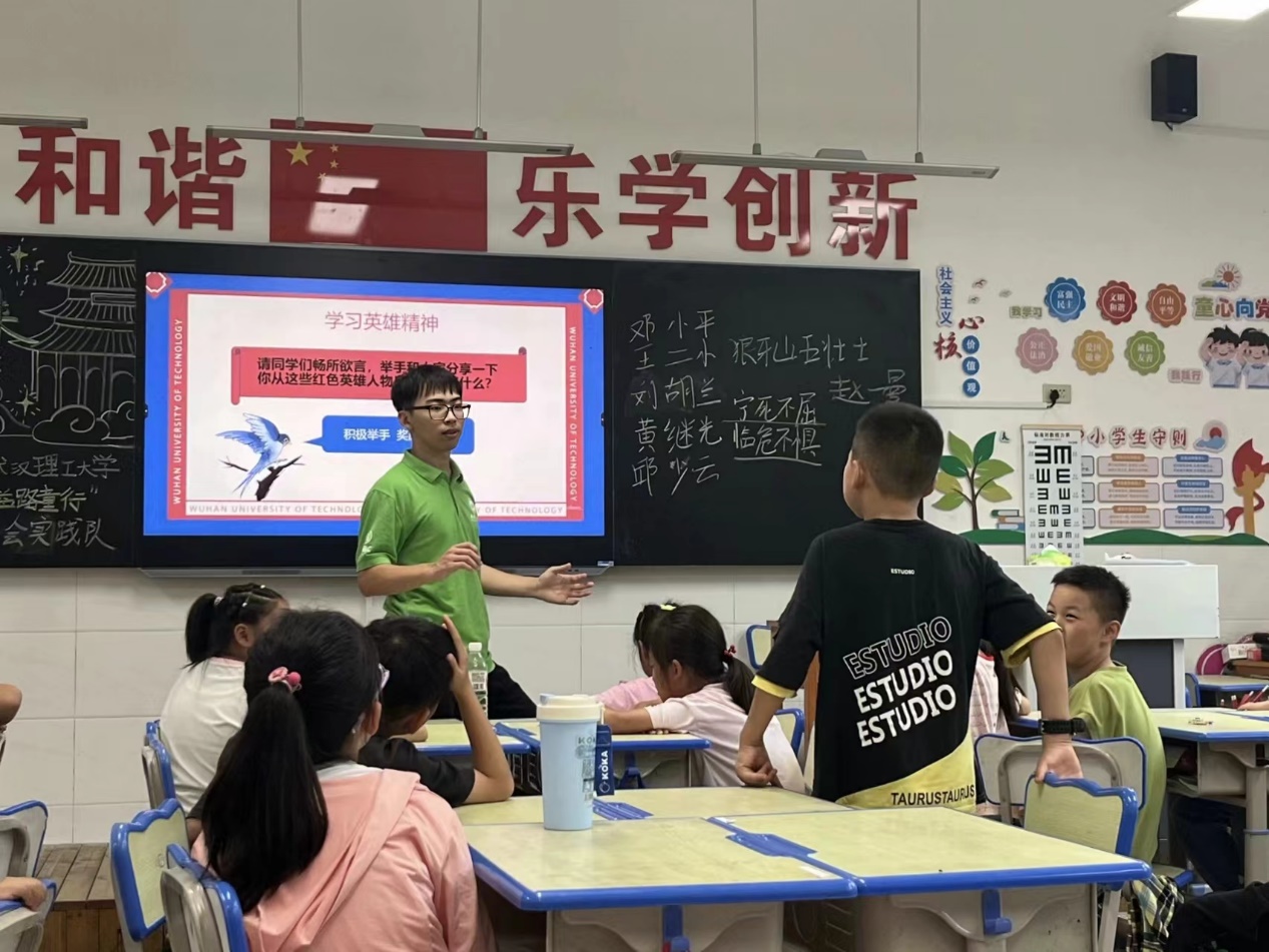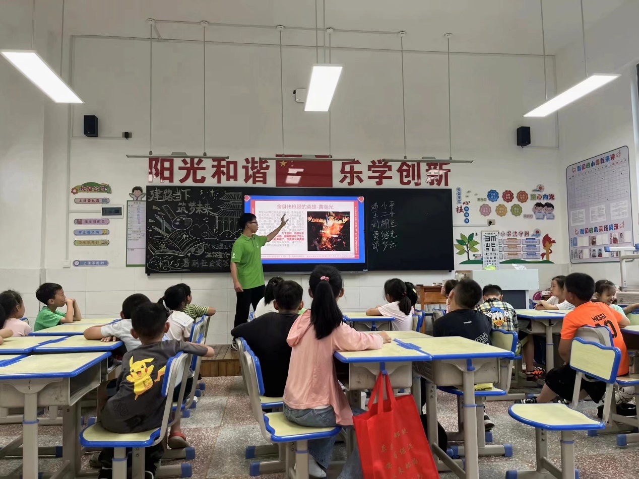 随着活动的深入进行,整个教室被浓厚的爱国氛围所包围。孩子们的眼神中闪烁着对英雄的敬仰和对祖国的热爱,他们纷纷表示要学习英雄的勇敢和坚强,面对困难不退缩;要学习英雄的奉献和无私,为社会贡献自己的力量。实践队队员们也被孩子们的纯真与热情所感染,他们耐心地解答着孩子们提出的每一个问题,鼓励他们在今后的学习和生活中继续传承和发扬革命精神。