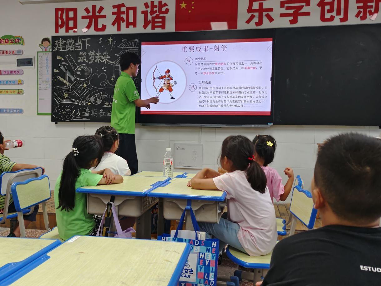 图为实践队员给同学们讲解射箭(中国青年网通讯员 顿儒彦 供图)