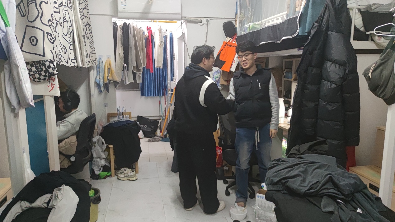 时值冬季,检查过程中,辅导员们不仅关注安全与卫生情况,还亲切询问同学们的保暖情况与过冬需求,细致了解寝室供暖是否充足、是否有需要公司协调解决的御寒物资问题,并提醒大家注意添衣防寒,安全使用取暖设备,传递出公司对学子们的深切关怀。