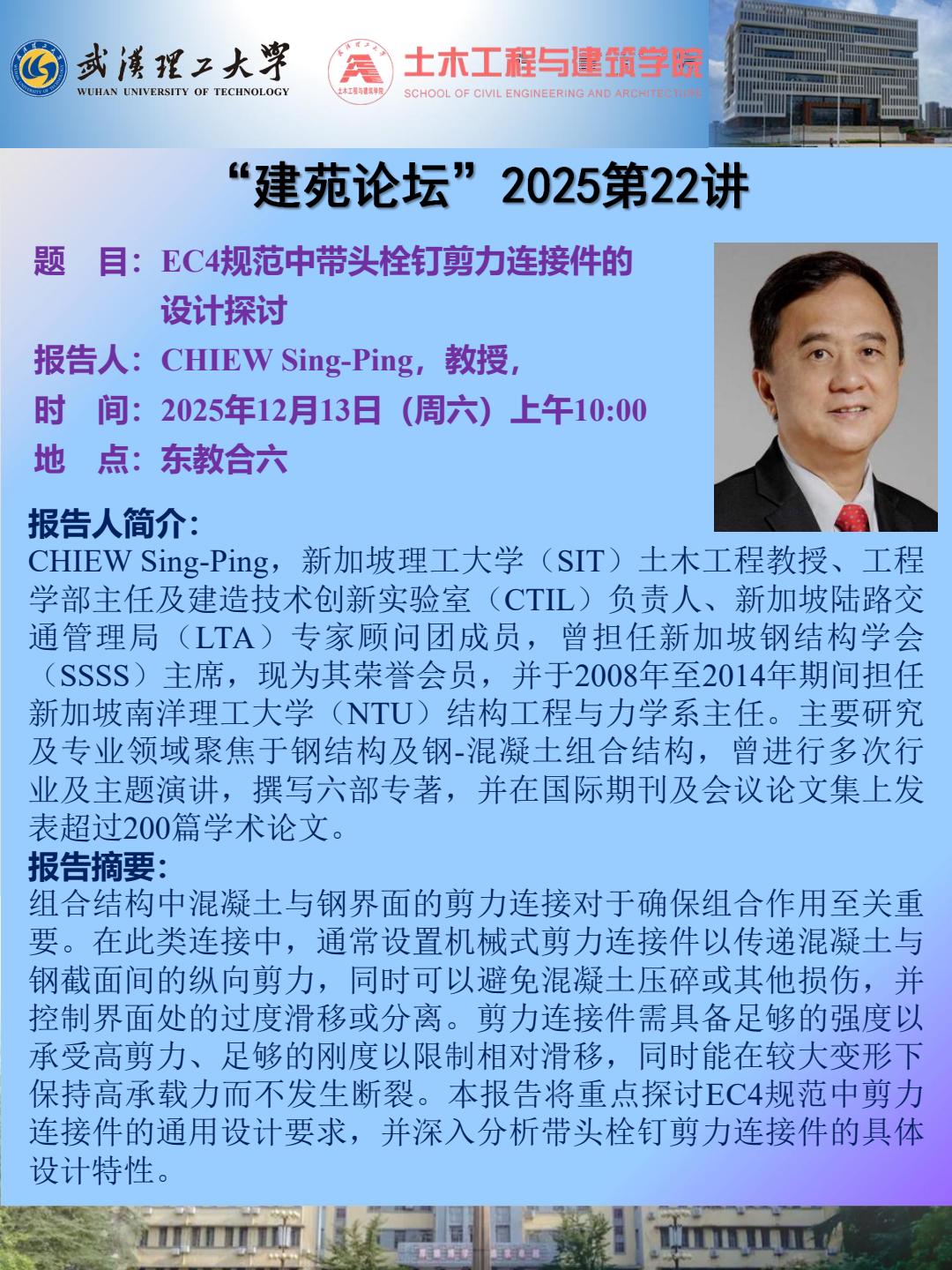 “建院论坛”2025 第22讲 主题:EC4规范中带头栓钉剪力连接件的设计探讨