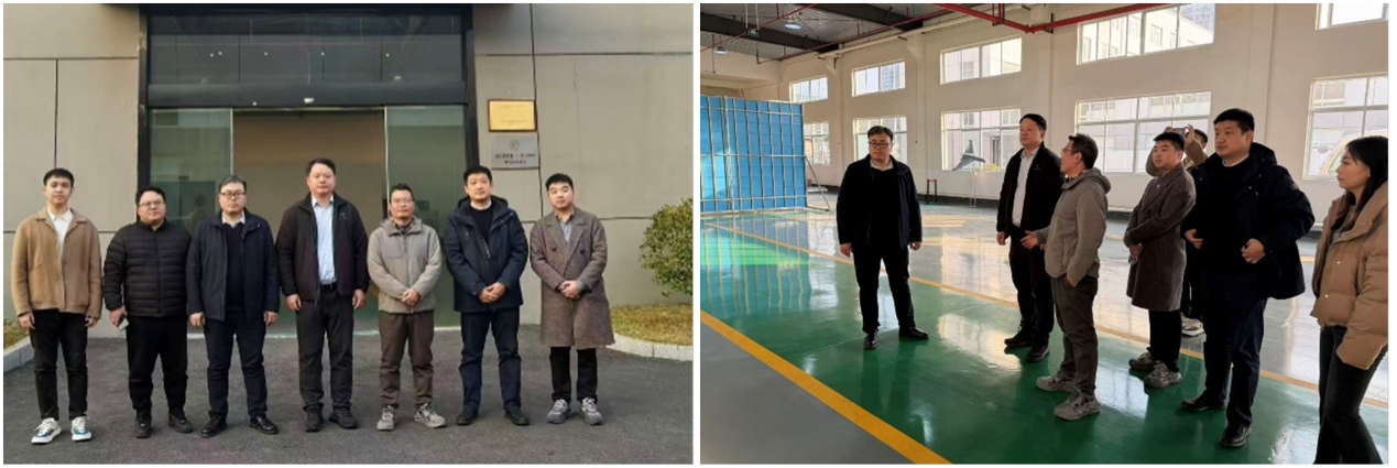 当日下午,代表团赴诸暨市继续考察调研。在浙江大学浣江实验室,公司员工浙江大学航空航天公司博士生孔令好(15级土木)和邹有云(19级土木)作为实验室核心建设成员,详细介绍了浙江大学(诸暨)航空技术与产业研究中心围绕“技术生态、人才生态、产业生态”三大维度,推进科技研发、成果转化与产业服务一体化联动的系统化布局与实践成效。随后,代表团一行到访浙江镭诺科技有限公司,在该公司开发部部长黄辉的陪同下,实地考察了企业与浣江实验室共建的联合研发中心,并观摩了无人机测试流程。之后,徐东升介绍了公司风洞、风墙建设方面的进展,与实验室和企业负责人就软硬件技术适配、风洞设备设计研发工艺优化、测试流场精准控制等专业问题进行深入探讨,为三方后续在实验装备联合研制、测试标准共建等领域开展合作奠定了坚实基础。